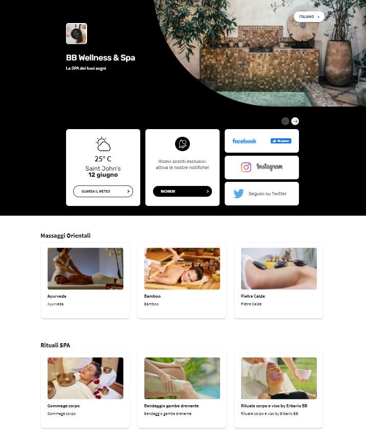 Allo stesso modo, se hai la SPA, ti divertirai a vendere trattamenti e massaggi attraverso l’apposito portale, un perfetto e-commerce ispirante, facile e completo, completamente personalizzabile.